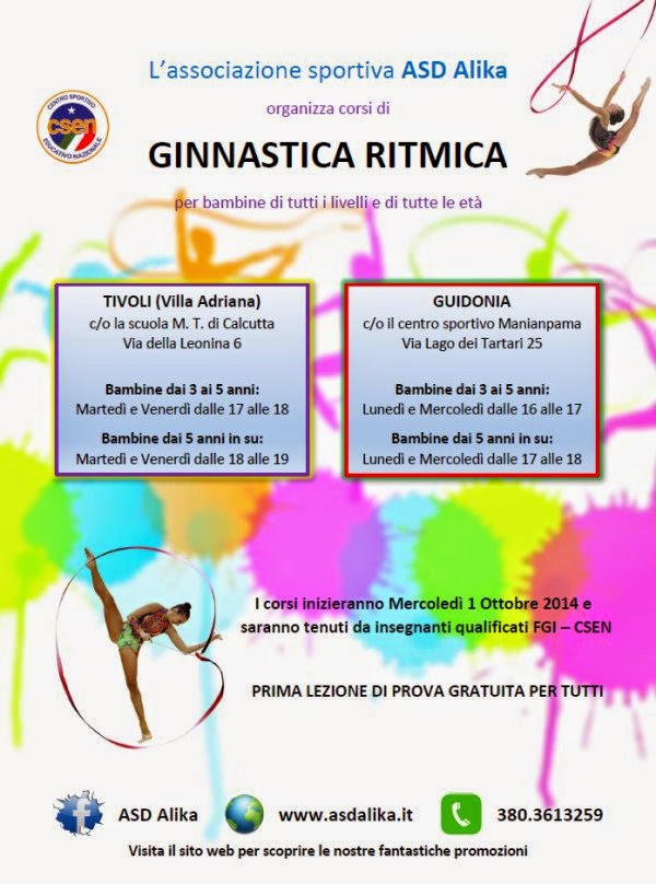 - Prima lezione (nonchè lezione di prova gratuita) per il corso 3-5 anni a Tivoli: Venerdì 3 Ottobre ore 17:00.
